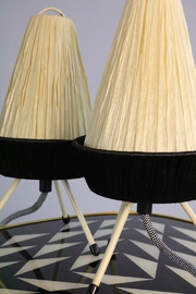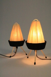Zwei zauberhafte kleine Tischlampen aus Bast. Stehen jeweils auf drei filigranen Beinen.