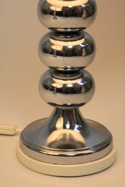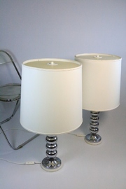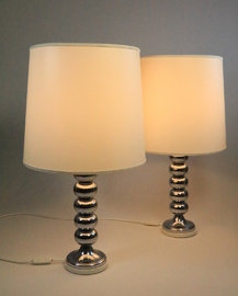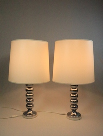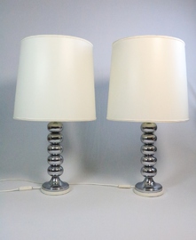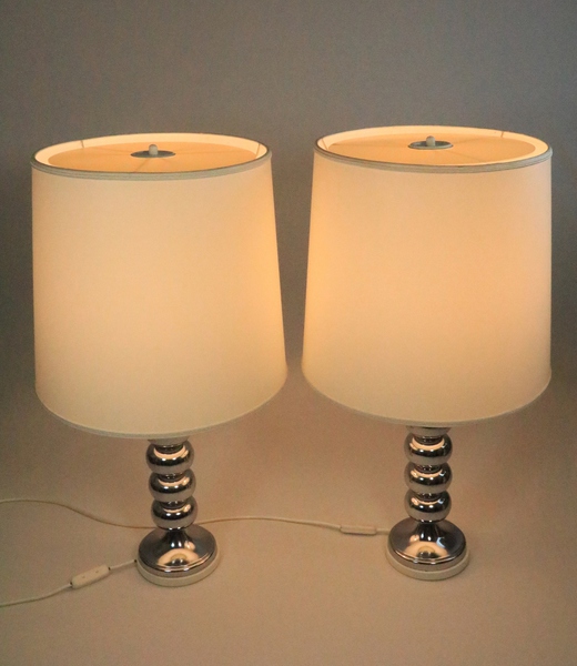 Mit Chromfuß und neu bezogenen Lampenschirmen.