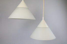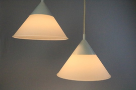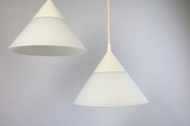 Ein Set aus zwei Hängelampen in Trichterform.