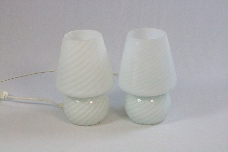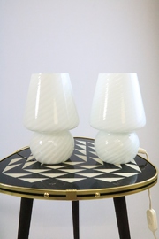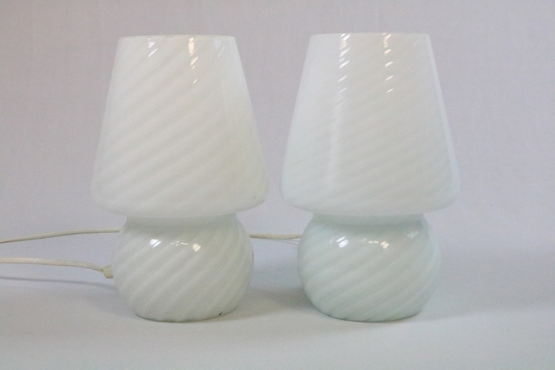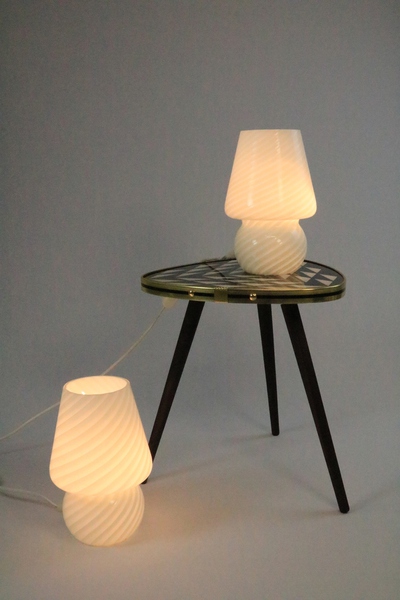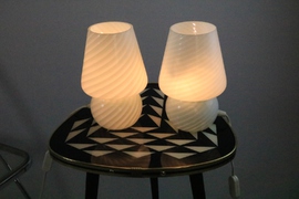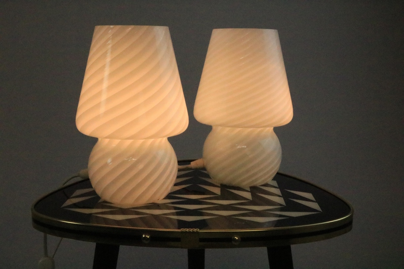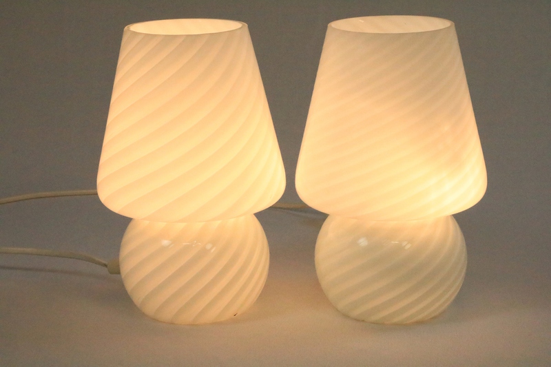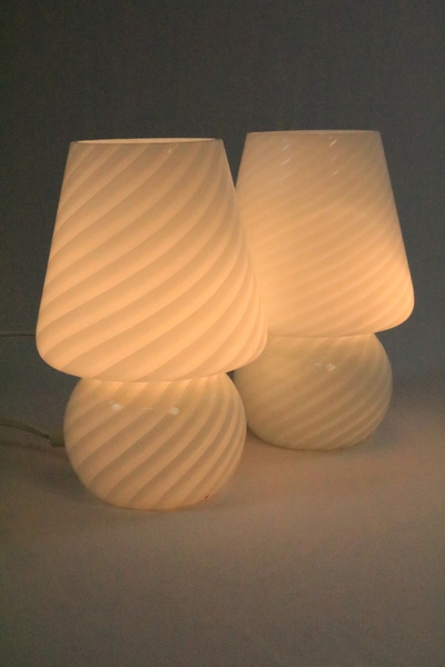 Ein schönes Paar Tischlampen, Pilzlampen aus gewirbeltem Muranoglas.