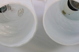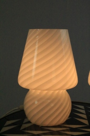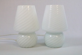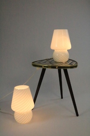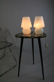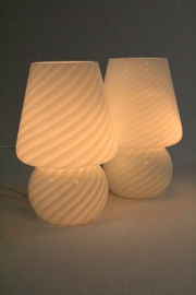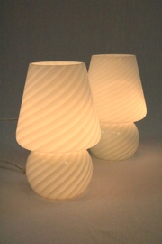 A beautiful pair of table lamps, mushroom lamps made of swirl Murano glass.