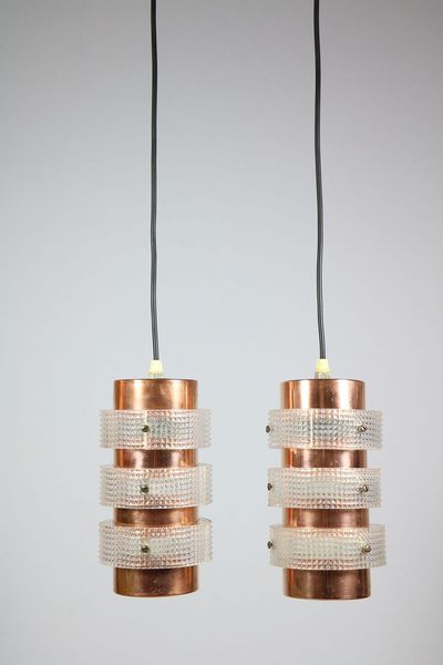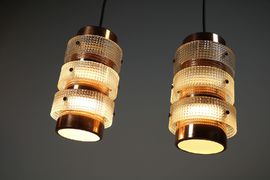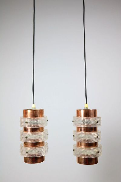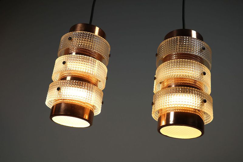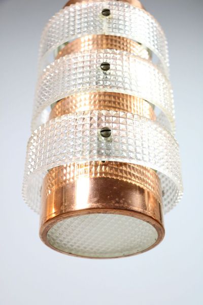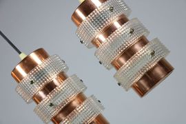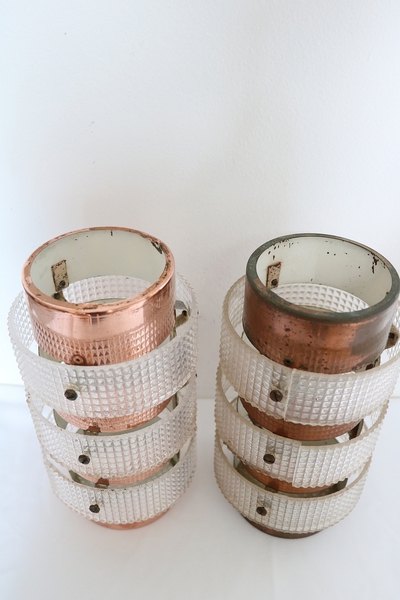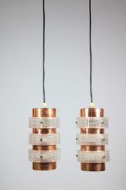 Kleinere, stimmungsvolle Kupferlampen aus den 50er 60er Jahren. Schöne Lichtbrechung durch die einzelnen Ringe.