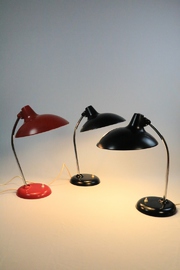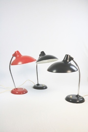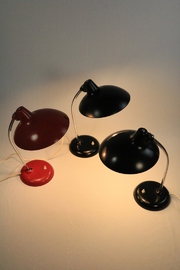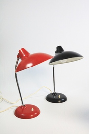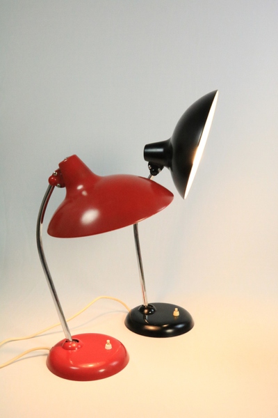 With an adjustable black or red lacquered metal shade and an adjustable chromed stem.