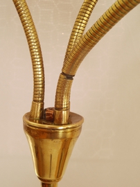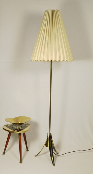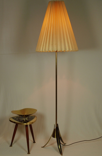 Hübsche 50er Jahre Stehlampe mit schwerem, massivem Messing Dreibeinfuß.