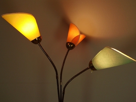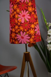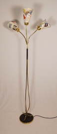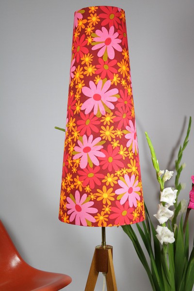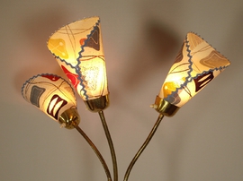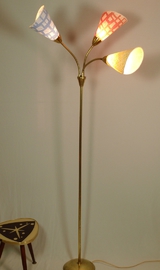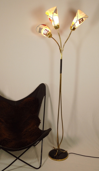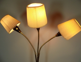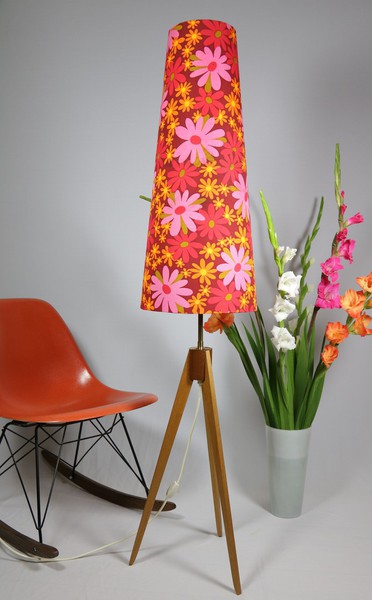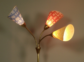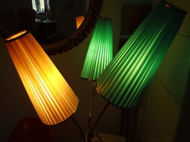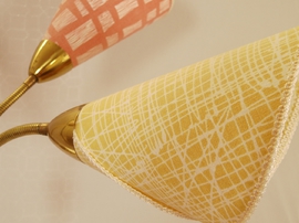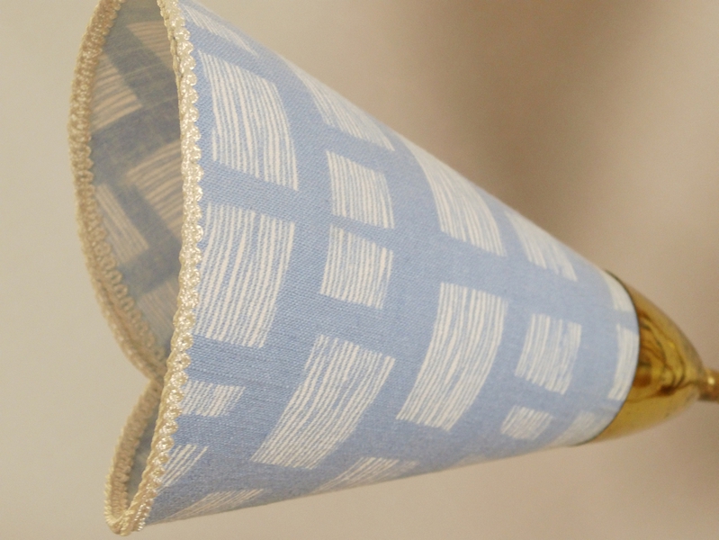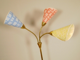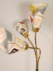 Tütenstehlampe mit neuen Schirmen in Originalstoff.