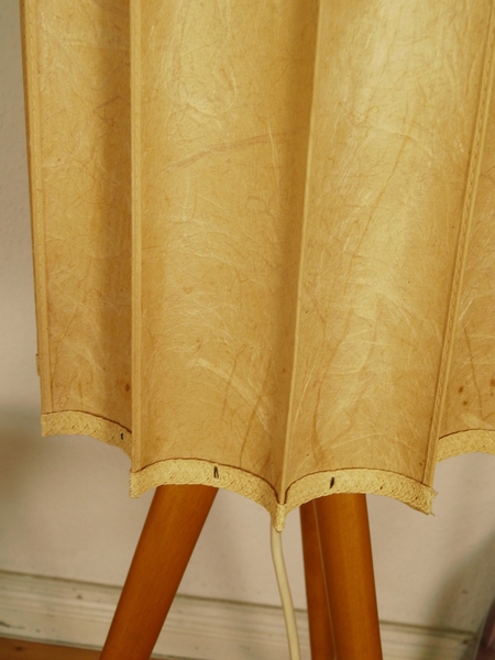 Kleine Tripod Stehlampe mit Plissee Schirm.