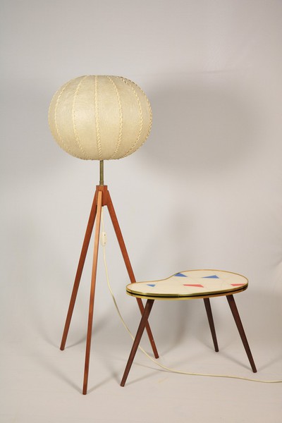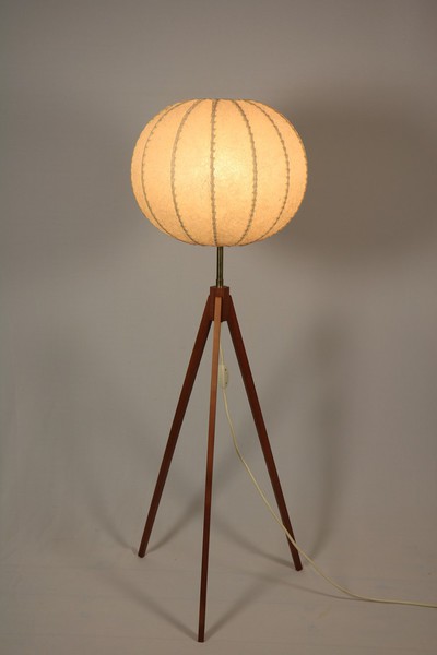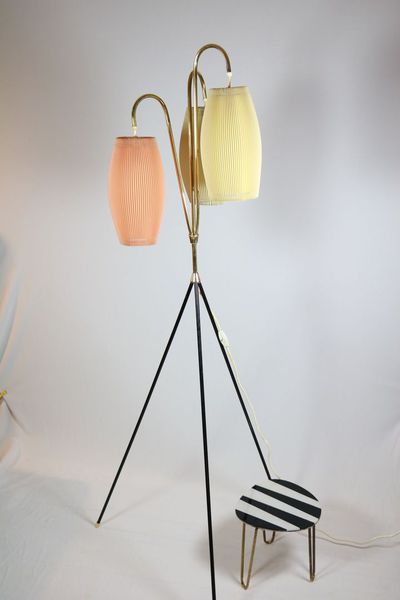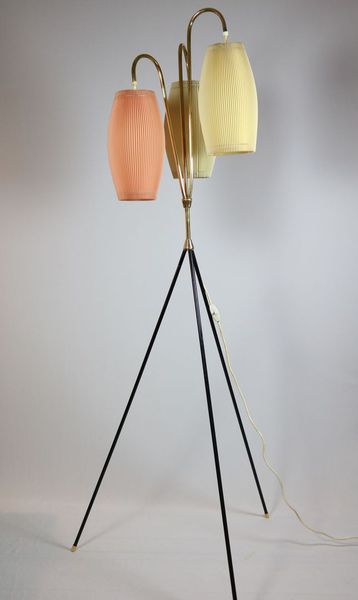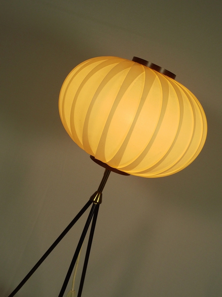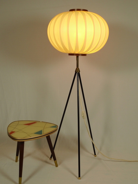 Sehr dekorative und gut erhaltene Tripod Stehlampe der 60er Jahre.
