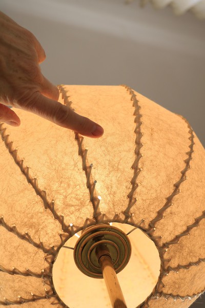 Wunderhübsche, atmosphärische Stehlampe mit Cocoonschirm.
