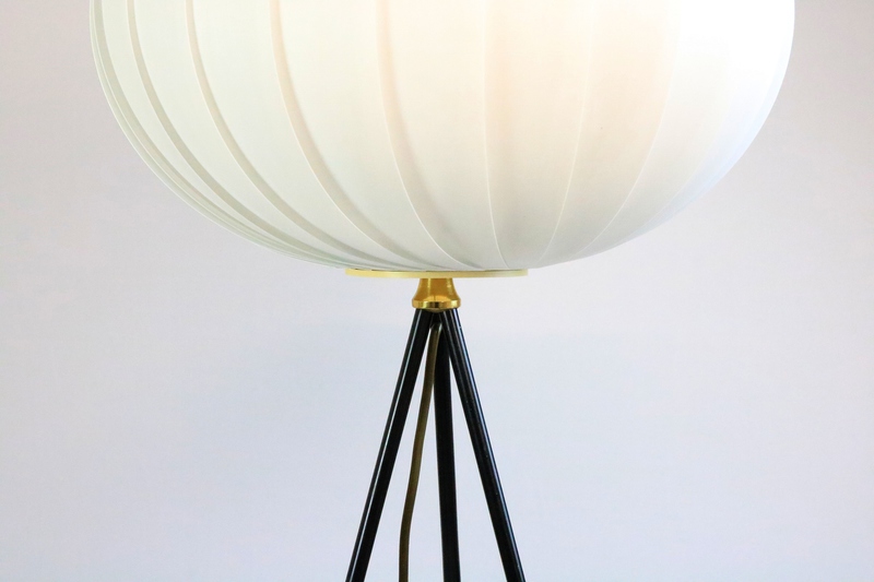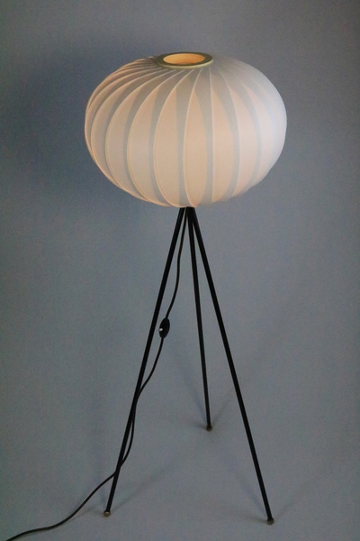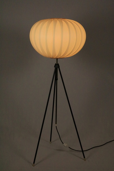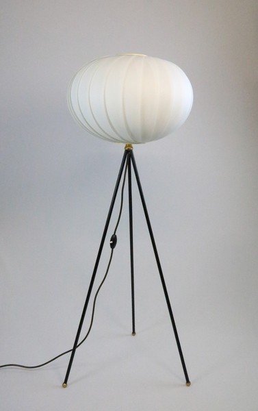 Hübsche, kleine Tripod Stelampe mit Cocoon Lampenschirm.