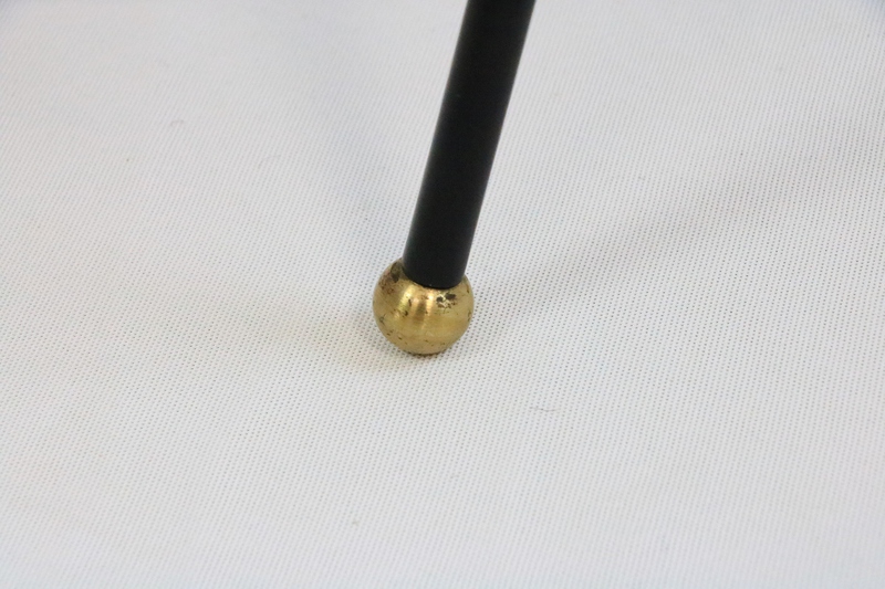 Schöner Erhaltungszustand mit Gebrauchsspuren, v.a. Fleckchen am Messing, leichte Unsymmetrie der nach unten führenden Messingstäbe.