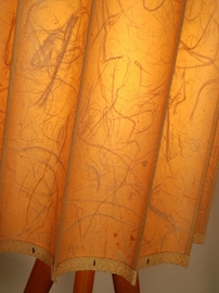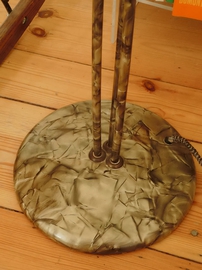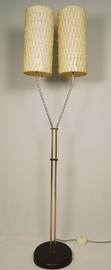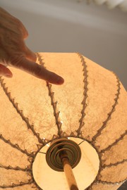Biete eine sehr außergewöhnliche und super erhaltene Stehlampe aus den 50er Jahren an. Sie hat ein sehr seltenes Perlmutter-Muster und wunderbare "Tüten" aus Stoff, die