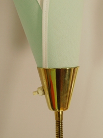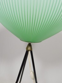 Zauberhafte Tripod-Stehlampe aus den 50er Jahren. Mintgrüner Plisseeschirm.