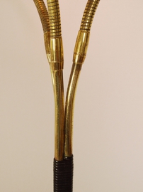 leicht zum Tragen kommt. Die Stange hat produktionsbedingt zwei kleine Löchlein im Messing. Die verschraubbare Abdeckung, aus der die Biegearme rausgehen, ist etwas locker. Insgesamt aber eine tolle