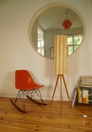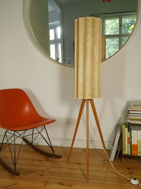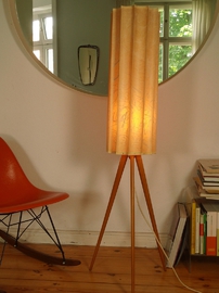 Sie ist ca. 130 cm hoch, steht auf drei schönen Holzbeinen und versprüht ein wunderbares Licht!