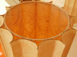Cocoon Lampenschirm aus gesprühtem Harz, mit Ziernähten.