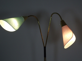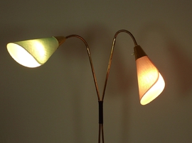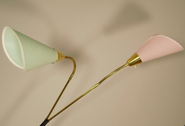 Filigrane Stehlampe mit zwei (festen!!) Biegearmen und neuen Tütenschirmen.