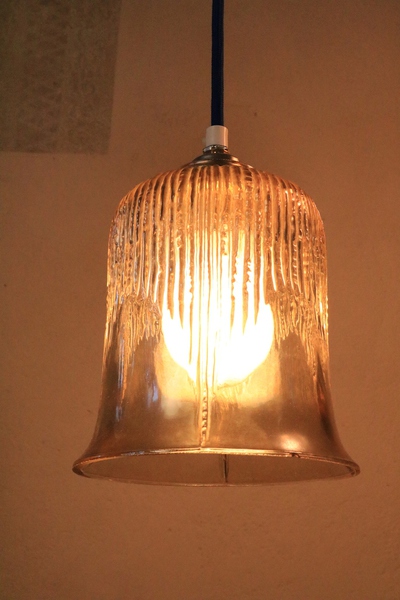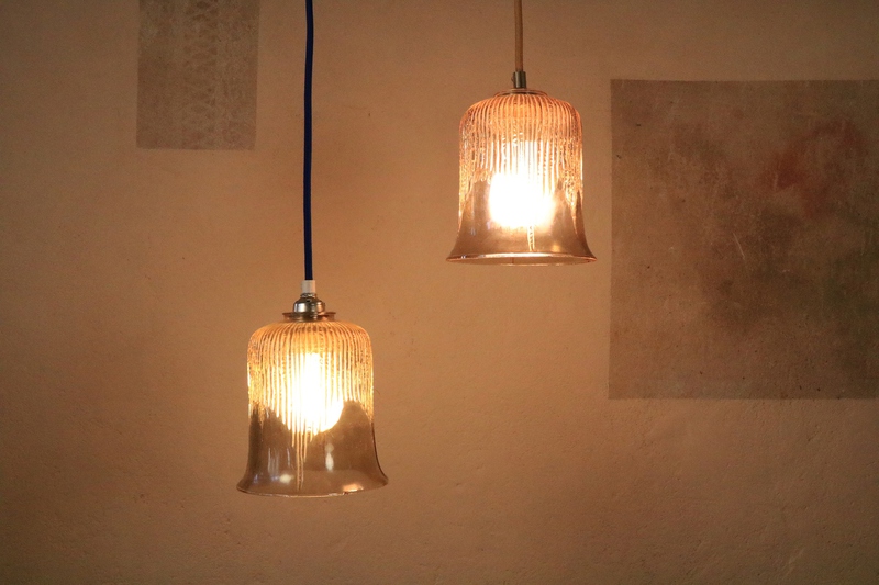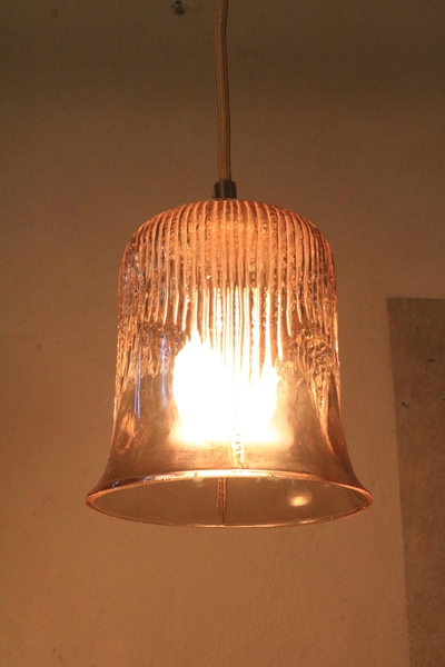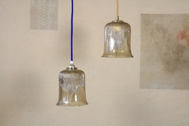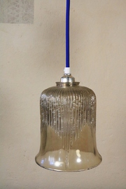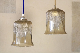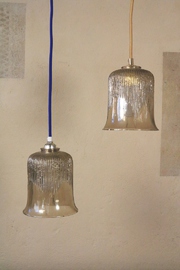 A total of 6 smaller glass lamps of the 1970s with textile cable according to your color preference.