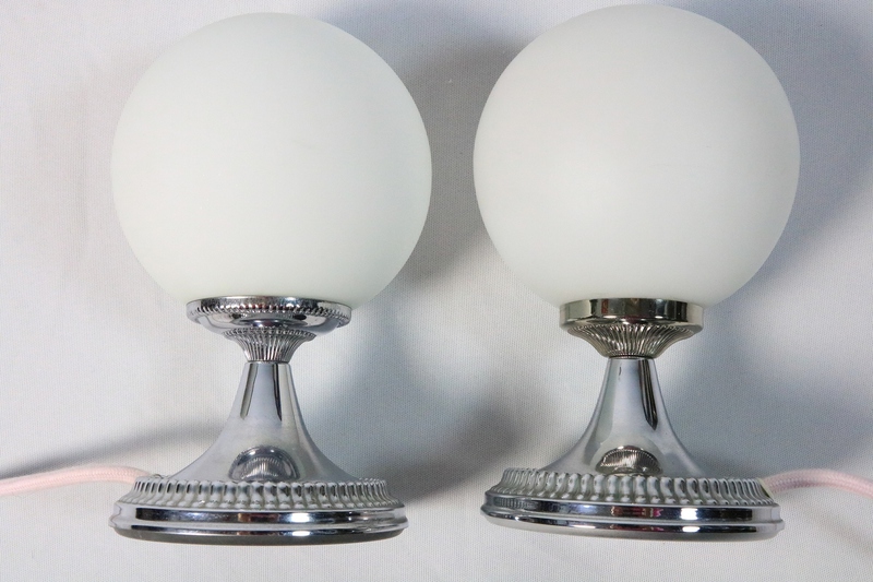 Very attractive pair of table lamps with chrome bases and opal glass globes from the 1970s.