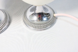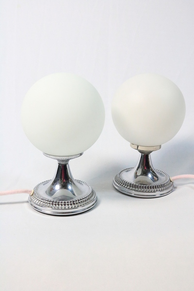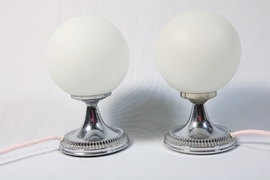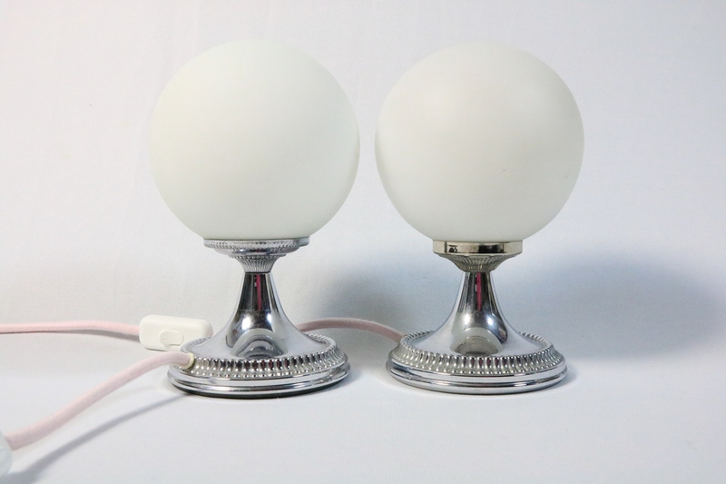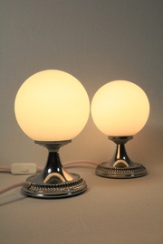 Sehr hübsches Tischlampen Paar mit Chromfuß und Opalglaskugel aus den 70er Jahren.