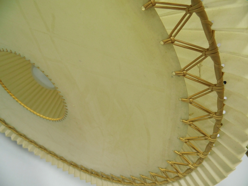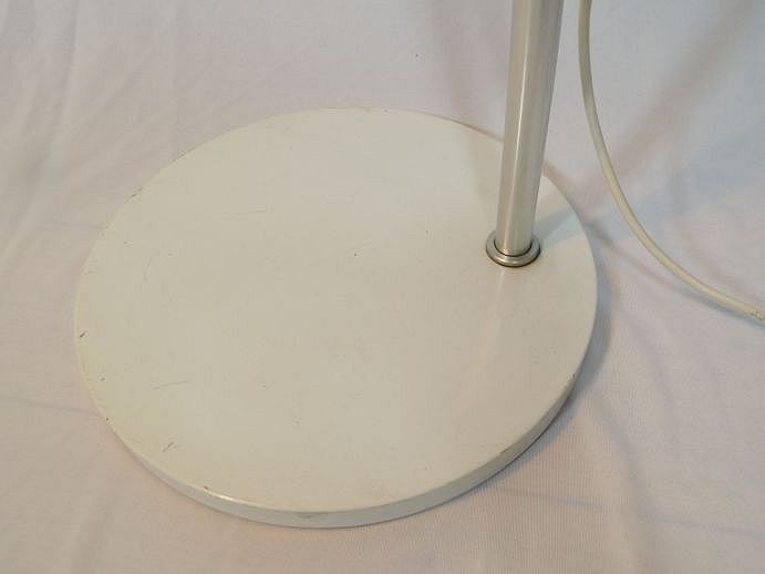 Geringe Gebrauchsspuren, wenige Kratzerchen am Schirm und am Fuß, vergilbtes Kabel.