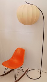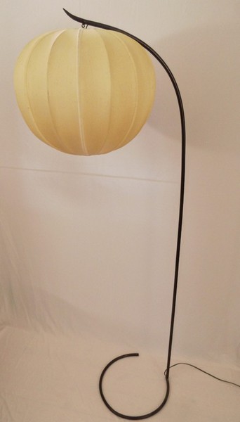 Nie gesehene Bogenlampe, schätzungsweise 50er Jahre, mit Cocoon-Schirm. Ausländischer Stecker.