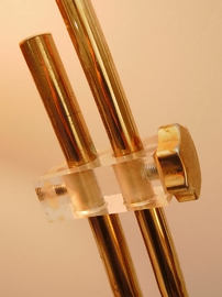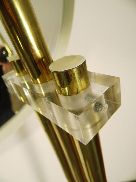 Sie besteht aus Messing und Acrylglaselementen, sowie einem Acrylglasschirm.