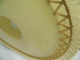 Schirm aus Kunststoff in der schönen Farbe "Milchkaffee". Wenn er leuchtet macht er ein tolles, warmes Licht.