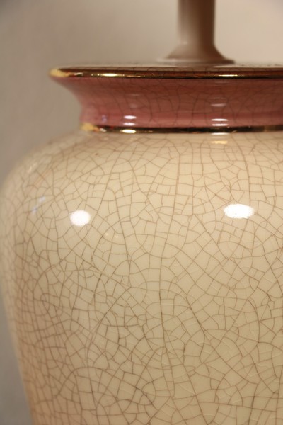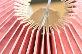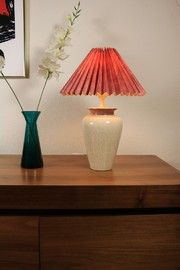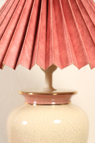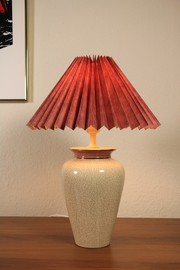 Tischlampe aus Dänemark mit schönem aufgesteckten Plissee Stoffschirm.