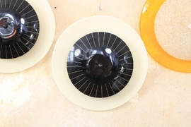 The third lamp is orange-yellow with a front disc made of granules (slight chipping at the opening).