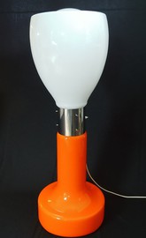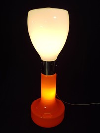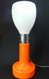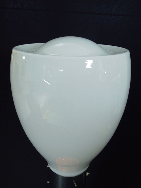 Sehr seltene und außergewöhnliche 100 cm große Stehlampe aus hochwertigem Überfangglas (Murano?) mit sensationellem Licht. Zweifach schaltbar. Durchmesser obere Tulpe: 32 cm.