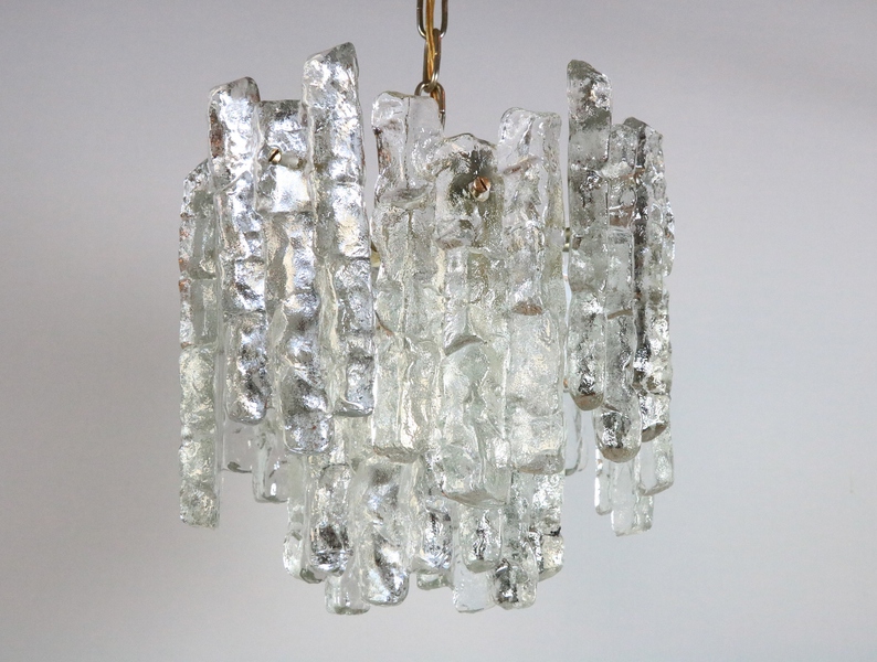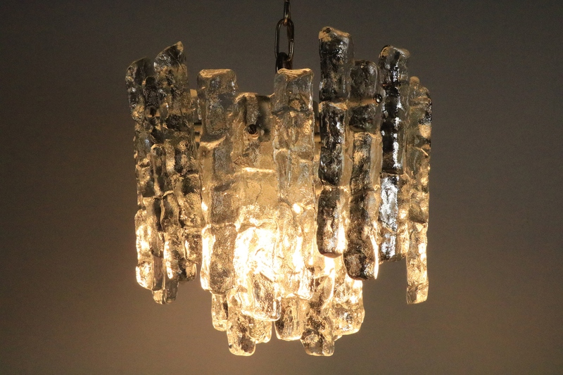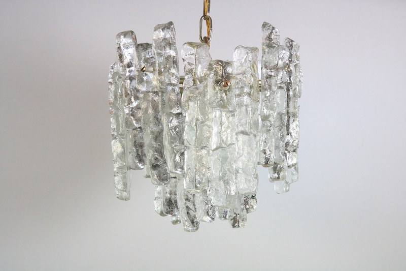 Sehr schöner und dekorativer Kronleuchter aus Eisglas. Wahrscheinlich Kristallglas.