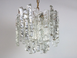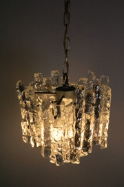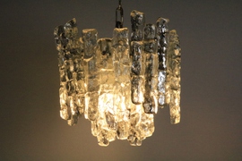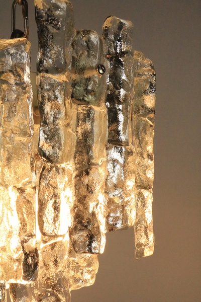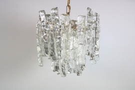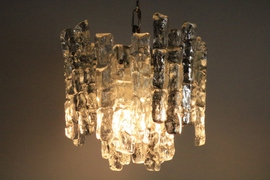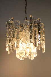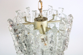 Very beautiful and decorative ice glass chandelier. Probably crystal glass.