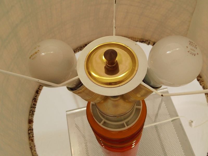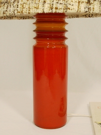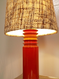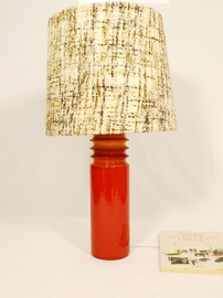 66 cm hohe Tischlampe mit Keramikfuß und Schirm mit grobem Hopsack (Durchmesser 35 cm).