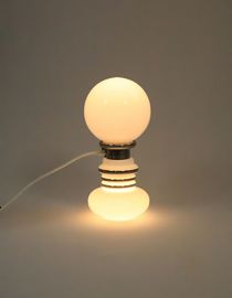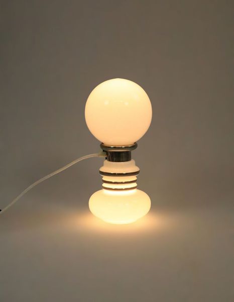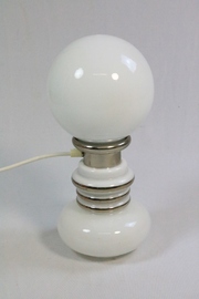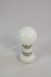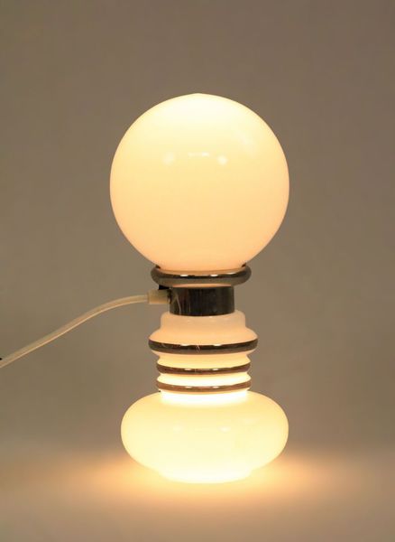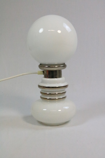 Large table lamp made of white opal glass and chrome.
