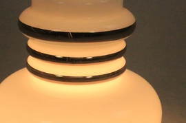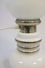 Große Tischlampe aus weißem Opalglas und Chrom.