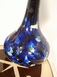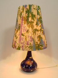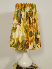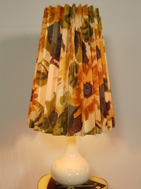 Zwei Tischlampen mit Keramikfuß und Plisseeschirm aus Stoff.