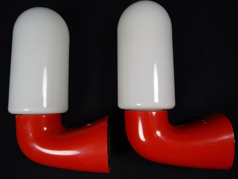 Außergewöhnliche und poppiges Wandlampen Paar mach dem Designvorbild von Wagenfeld.