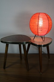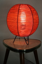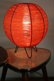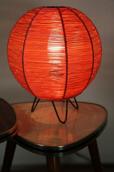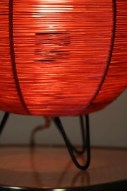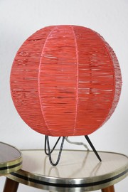 Reizende, kleine Tischlampe aus roten Fäden und drei Schlaufenbeinen.