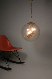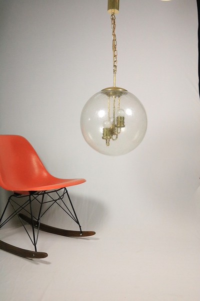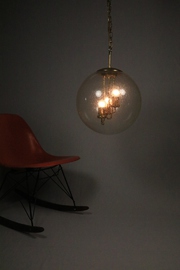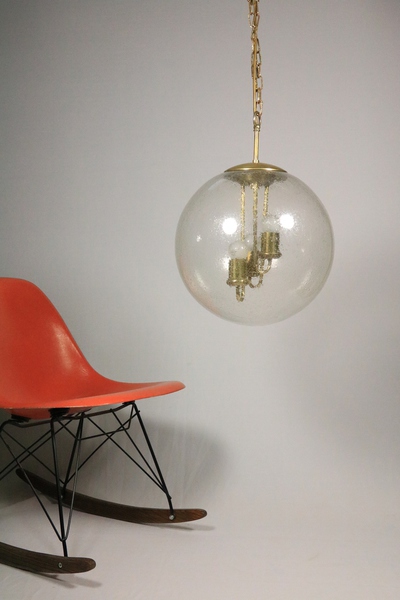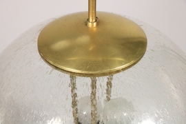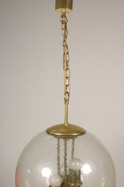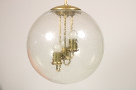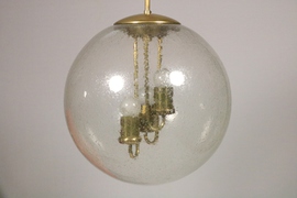 Sehr effektvolle, große Kugellampe aus Blasenglas mit Messingfassungen innen.