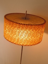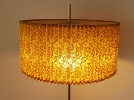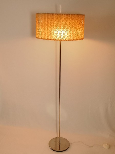 Stimmungsvolle Stehlampe mit Plisseschirm und Chromfuß, DDR, 70er Jahre.