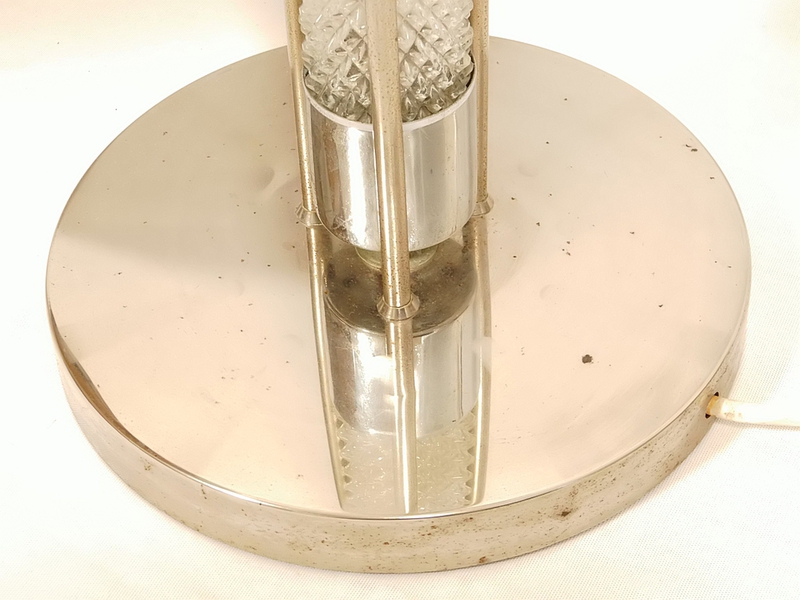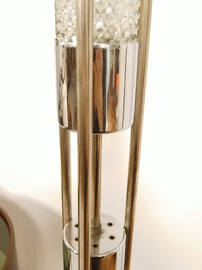 Sie hat einen Chromfuß, der drei Kristallglasröhren integiert, die ebenfalls leuchten.