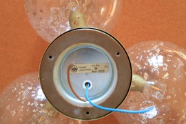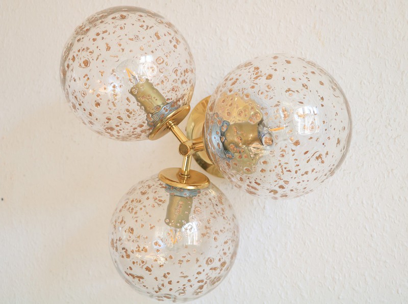 Sputnik Wand- oder Deckenlampe mit drei Glaskugeln und Goldeinschlüssen.