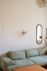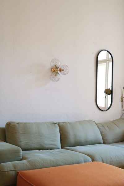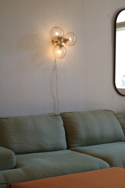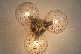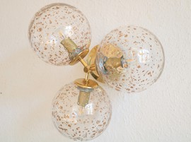 Sputnik wall or ceiling lamp with three glass balls and gold inclusions.