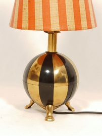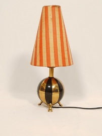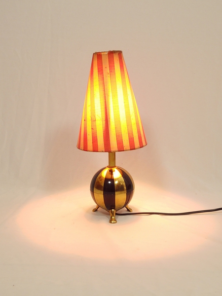 Sehr hübsche, kleine und außergewöhnliche Tischlampe der 50er Jahre im Streifenoutfit und mit Pfoten.