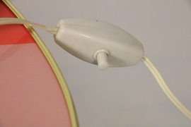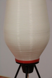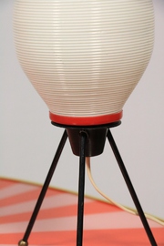 Typisch ist der Lampenschirm aus Kunststoff, mit schmalen Rillen.