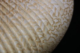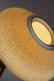Cocoon Lampenschirm aus Kunststoffplissee. Spitzenmuster.