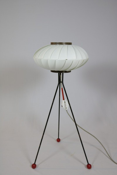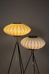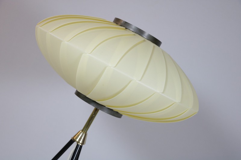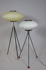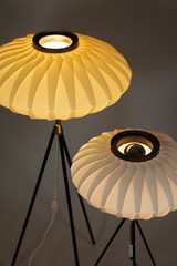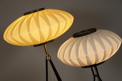 Zwei wunderhübsche Tripod Stehlampen mit Schirmen des finnischen Designer Valinte Oy.