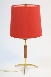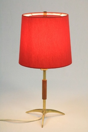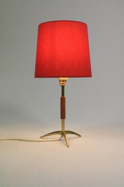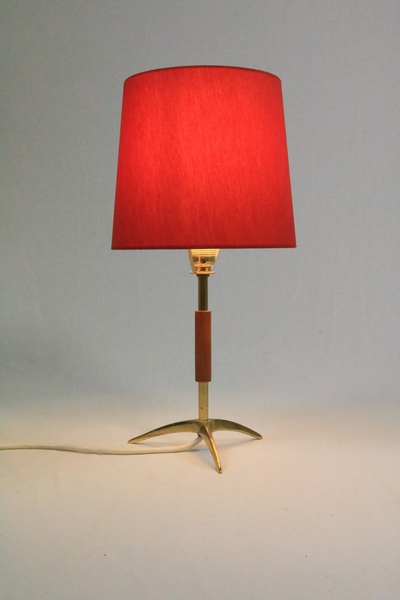 Eine sehr schöne, kleine Tischlampe mit Teak und Messingelementen und Krähenfuß.