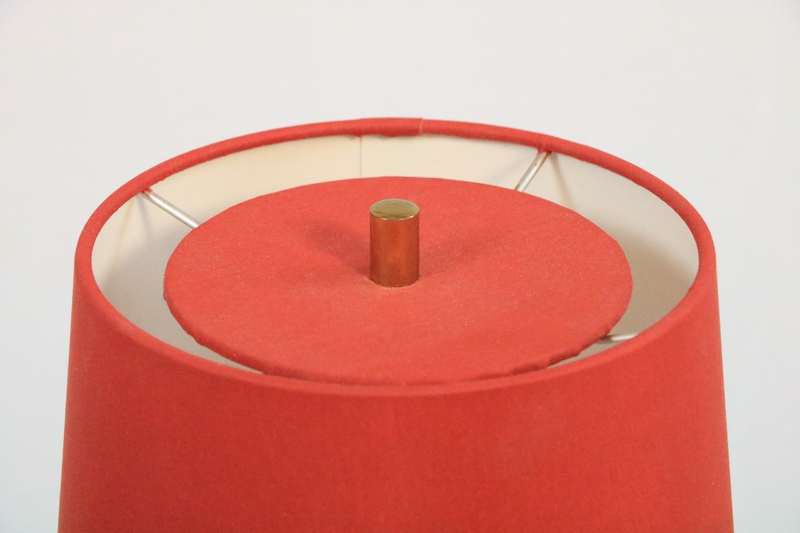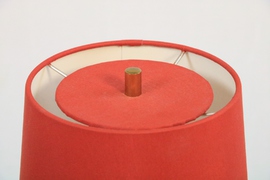 Neuer, professionell angefertigter Lampenschirm in sehr harmonisch passendem Rot.