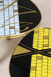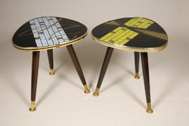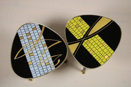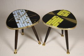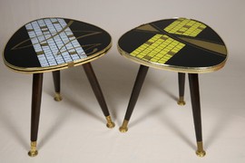 Schöne alte Blumentische mit zeittypischem 1950er Jahre Muster.